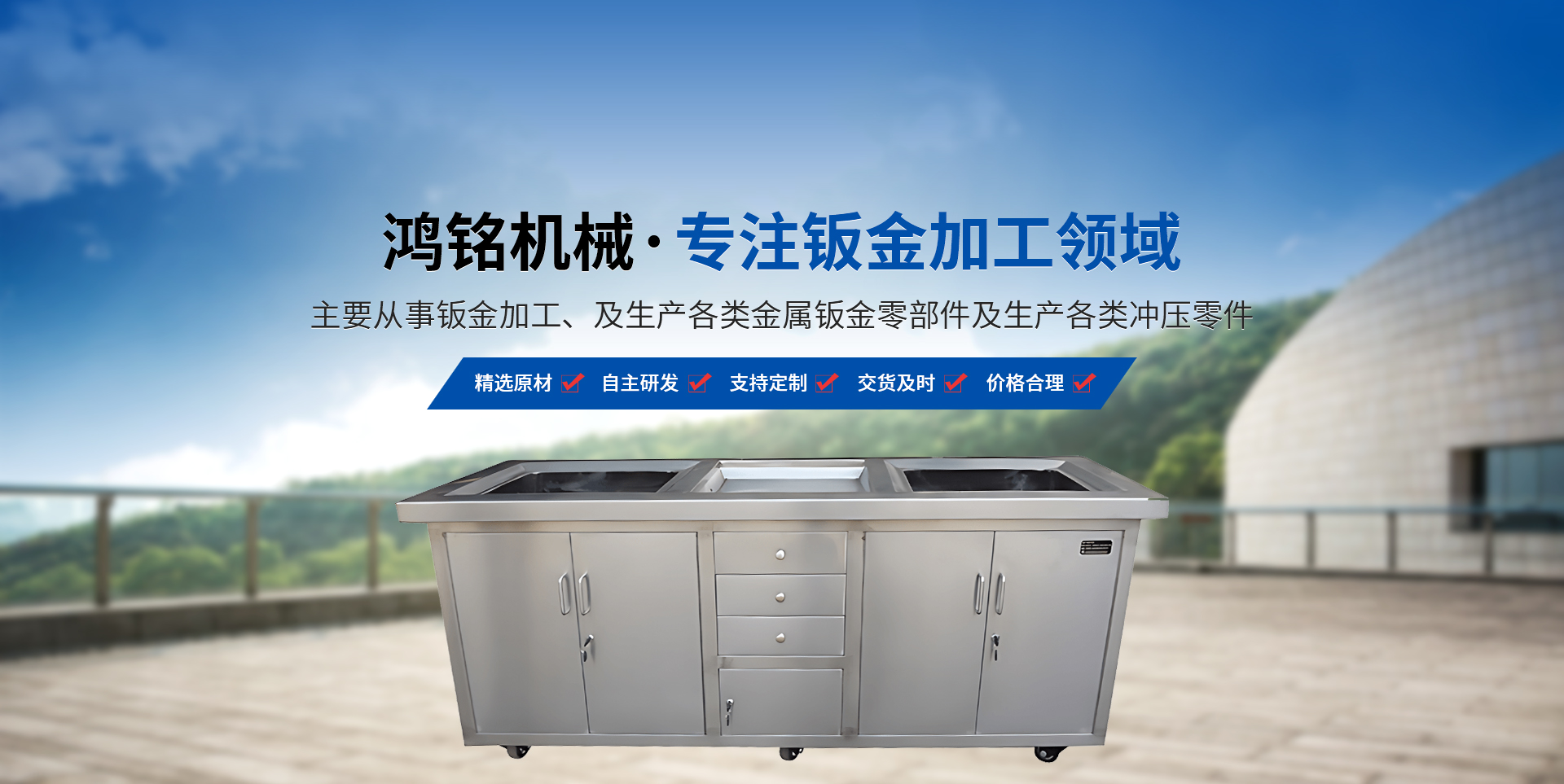 新鄉市鴻銘機械有限公司成立于2009年,占地面積8000平方米,位于新鄉市衛濱區南環路,地理位置優越,交通便利。 本公司設備為德國進口激光切割機,揚力400T折彎機,揚力沖床等設備。主要從事鈑金加工、及生產各類金屬鈑金零部件及生產各類沖壓零件。  公司長期與國內外大型企業合作深受新老客戶的贊賞,同時公司對外承接各類鈑金加工業務(標準鈑金件與非標鈑金件),先后為多家知名企業配套加工鈑金,公司也可根據客戶的需要代為設計,尤其對精度、外觀要求高的產品有獨到的生產經驗。 我們本著"科學管理、全員參與、持續改進、滿足客戶"的質量方針來生產我們的每一件產品。為了在市場競爭中立于不敗之地,公司以質量求生存,以設備保精度。歡迎新老客戶到本公司實地考察。  本企業建立以來,以"質量保證,信譽保證,交貨及時,價格合理"為宗旨,贏得了客戶的一致好評。面對市場經濟的挑戰,公司將以產品和服務參與市場競爭,為廣大客戶提供鈑金加工平臺。